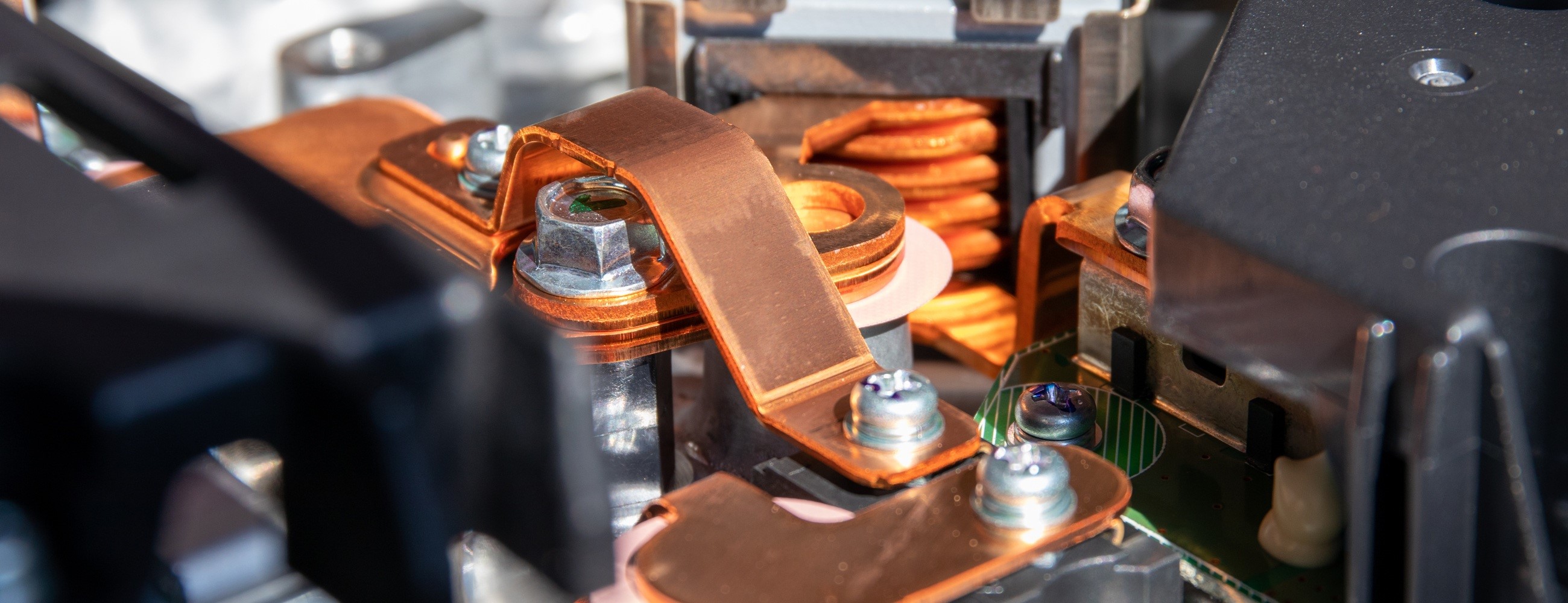 Copper is the primary conductor material used in laminated busbars. Its high electrical conductivity and low resistivity allow it to carry large currents efficiently, making it well-suited for applications such as traction inverters, on-board chargers, DC-DC converters and other power supplies.