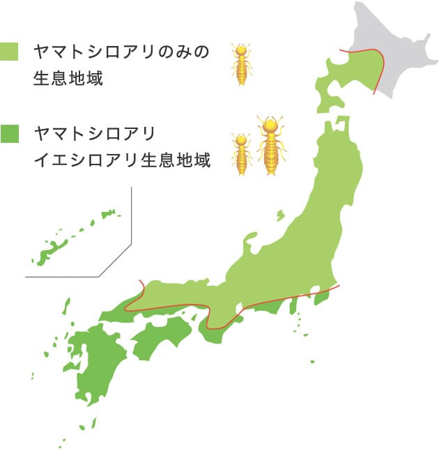 最近では、既存の方法では防除が難しい、レイビシロアリ科の“アメリカカンザイシロアリ”というシロアリが日本でも散発的に報告されています。