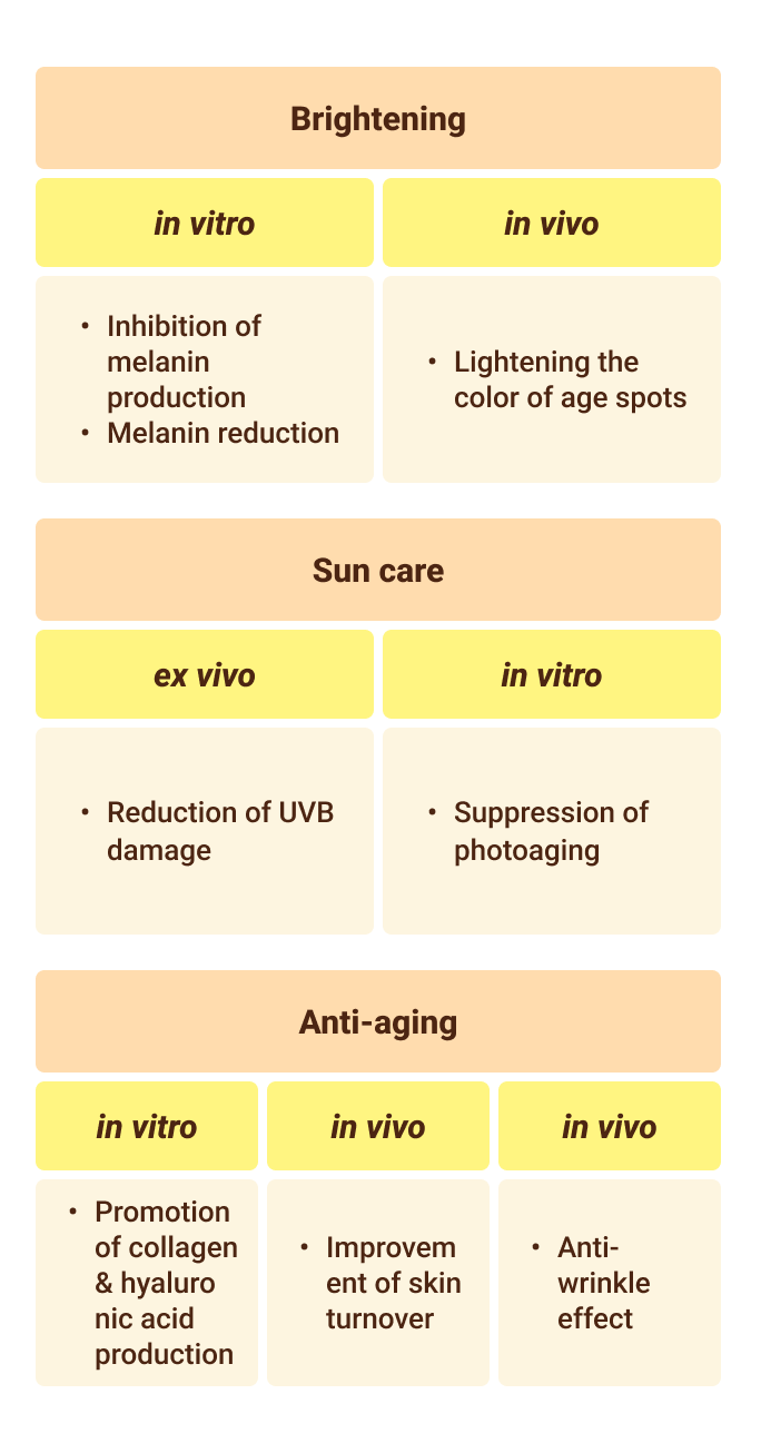 Vitamin C is essential for our body with many biochemical roles such as the function in collagen synthesis and antioxidant functions, and so, its effects for skin should go beyond brightening. Initially developed for skin brightening, ongoing studies about AA2GTM have demonstrated its efficacy in anti-aging and sun care, with extensive evidence supporting its diverse mechanisms and long-term benefits in skincare formulations.