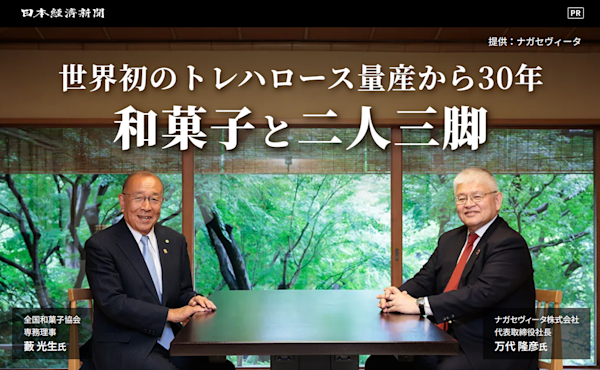 A dialogue advertorial has been featured in The Nikkei Online Edition, highlighting the 30-year collaborative journey of our functional sugar "trehalose" and the Wagashi (traditional Japanese confections) industry.