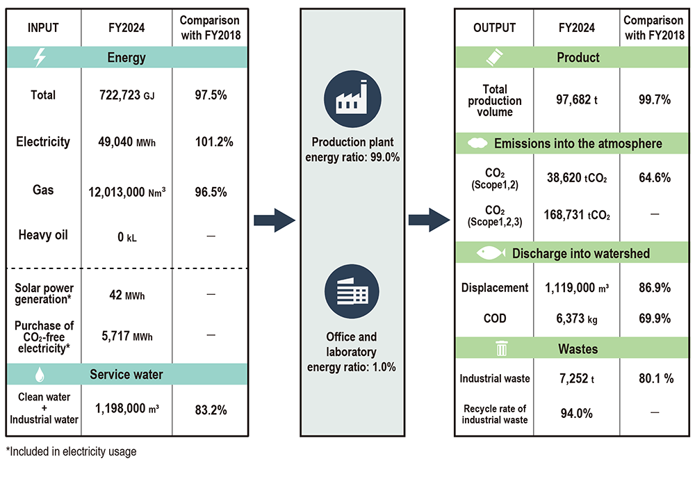 Nagase Viita regularly monitors the environmental impacts associated with our business activities to reduce the use, emission, and disposal of valuable resources.